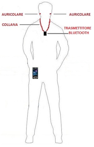 questa collana funge da antenna radio capace di trasmettere l’audio direttamente all’auricolare.