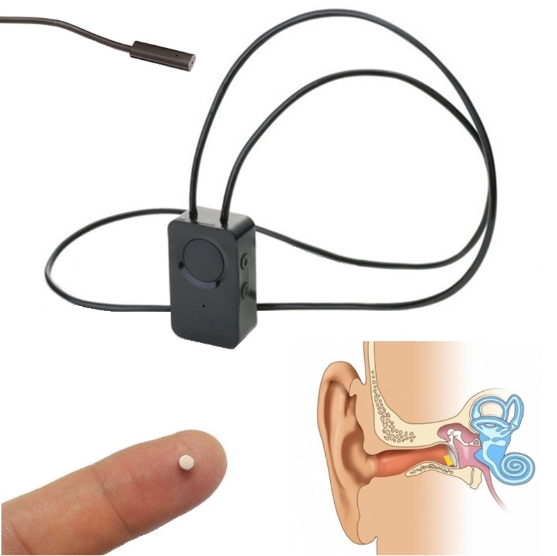 Auricolare magnetico, da inserire nell’orecchio (in fondo al condotto uditivo) non necessita di batteria, permette di ascoltare in modo segreto con qualità audio molto buona senza fruscio di fondo, indicato per ambienti non rumorosi.