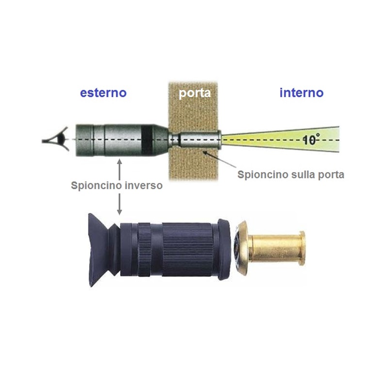 Piccolo monocolo tascabile che permette la visione ATTRAVERSO gli spioncini delle porte di ingresso degli appartamenti