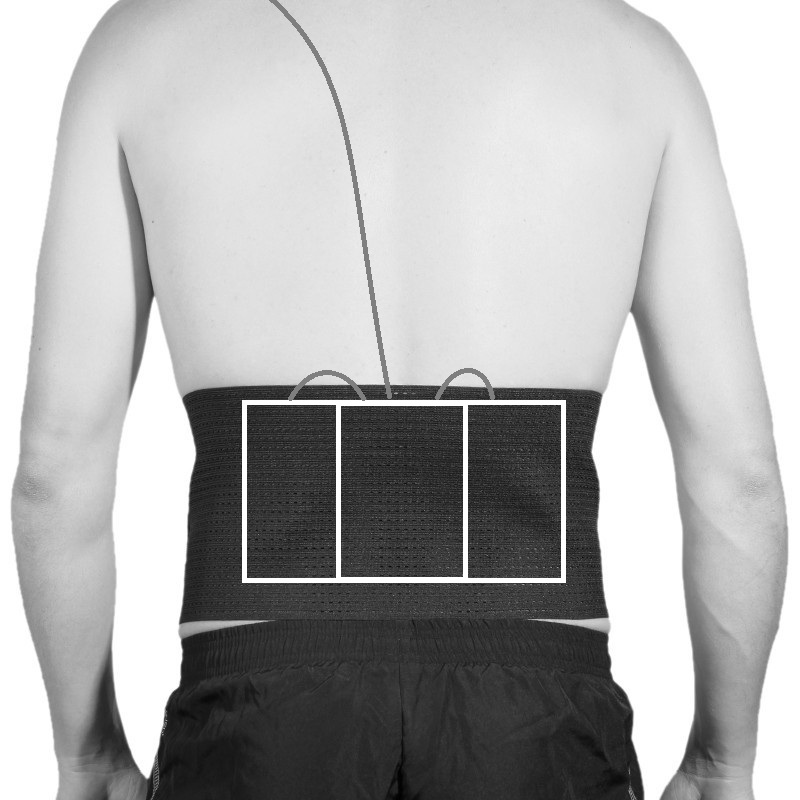 - Il Modem/Router WiFi [C], la Centralina elettronica [B] e il Pacco batterie [D]sono posizionati sulla linea orizzontale che percorre la zona lombare
