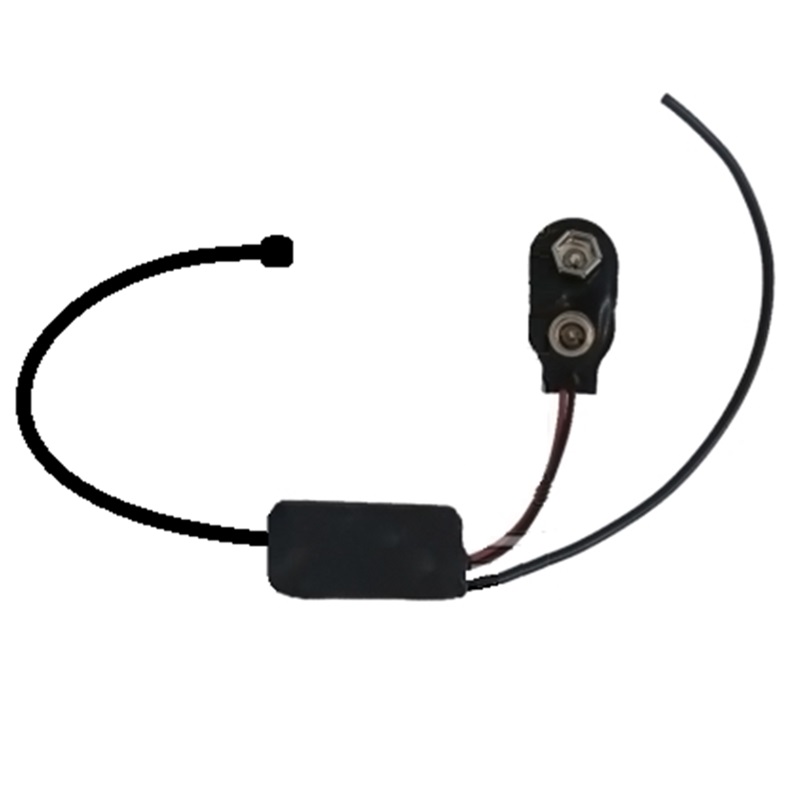 Dotato di clip per batteria a 9 volt, potenza d’uscita di 80 mW.